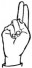 На ћирилици написано БУДИМИР ПЕТКОВИЋ састоји се из 15 слова [?]. Исписано ћириличном једноручном азбуком за глувонеме: